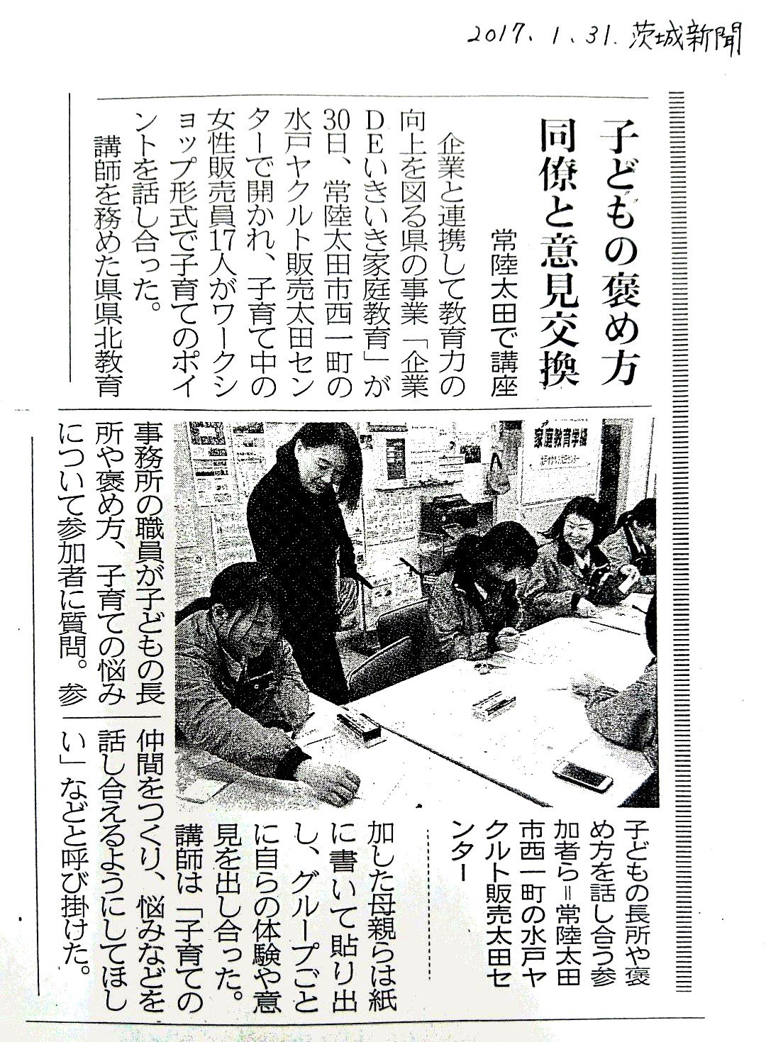 - 水戸ヤクルト販売太田センターで行われた「企業における家庭教育学級」が茨城新聞で紹介されました。